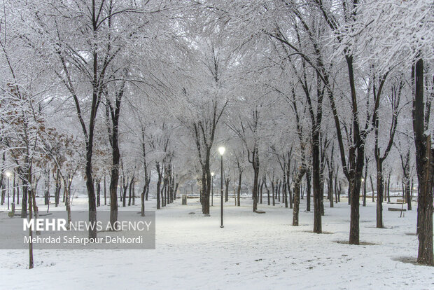سهند- باران و برف بامداد یکشنبه در شهر جدید سهند در آذربایجان شرقی به شدت در حال بارش است.