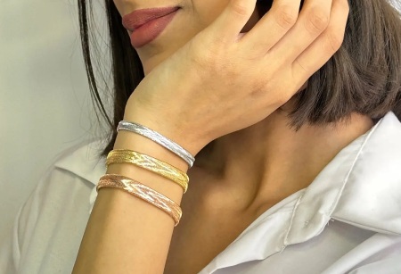 عیار استاندارد آن ۱۸ عیار (۷۵ درصد طلا خالص، ۲۵ درصد آلیاژهای نقره، مس و گاهی روی) است که طبق استانداردهای جهانی ISO 9202 تایید شده. وزن متوسط آن ۱.۵ تا ۵ گرم است و سایز استاندارد برای مچ های ۱۵-۲۰ سانتی متری طراحی می شود. تفاوت کلیدی با دستبندهای سنتی: انعطاف پذیری بدون نیاز به تنظیم دستی.