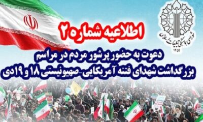 شورای هماهنگی تبلیغات اسلامی با صدور اطلاعیهای از مردم دعوت کرد در مراسم بزرگداشت شهدای فتنه آمریکایی - صهیونیستی ۱۸ و ۱۹ دی که فردا ساعت...